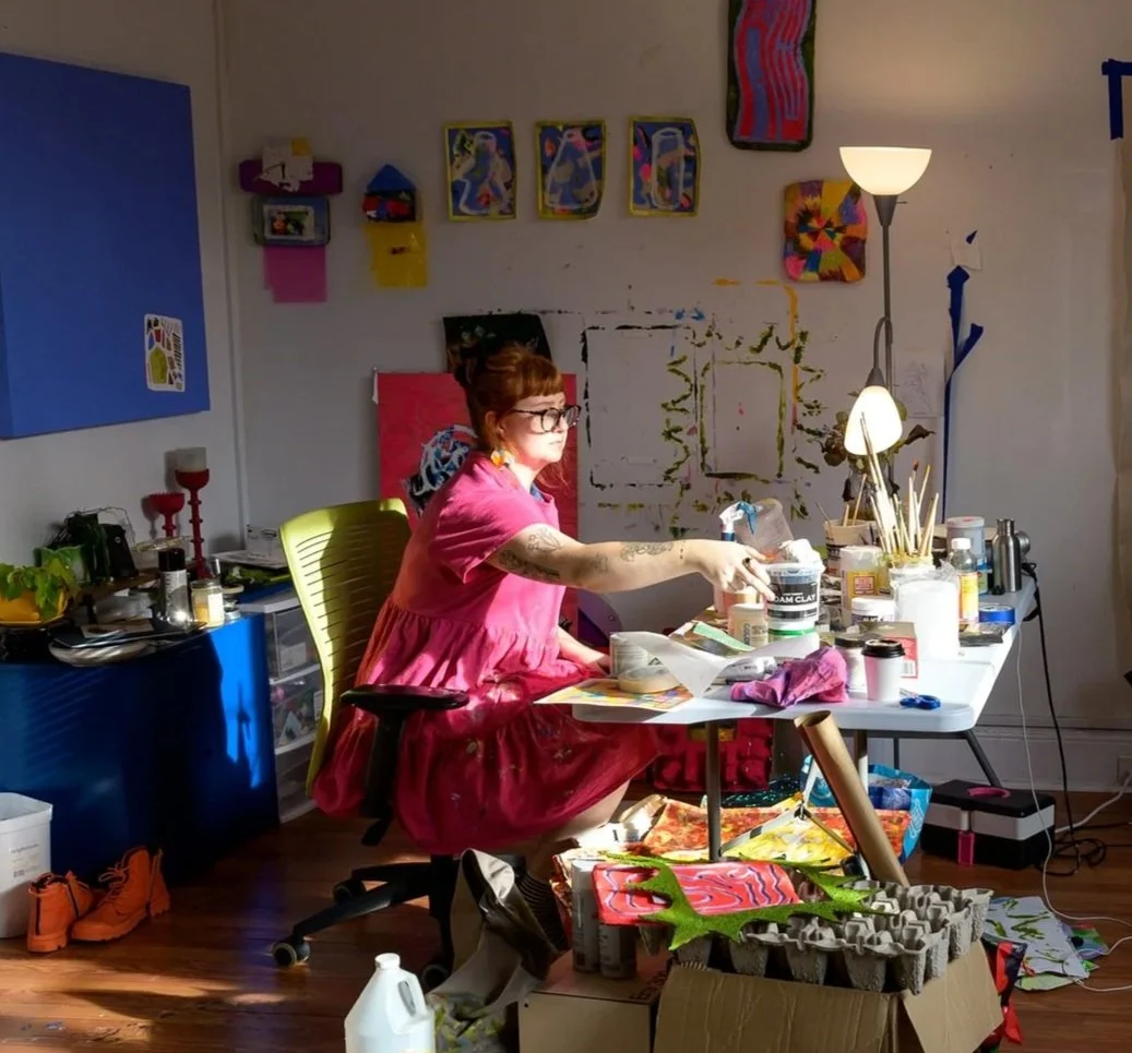 Audrey Benzing is a painter and maker originally from Jackson, Mississippi now based in Manhattan. An awarded 9 month artist residency with Transform Arts moved her to the city in 2023. Audrey has since gone on to speak at Creative.nyc, Transcender Art Session, and has exhibited work in a one night residency duo show with Transform, Arthouse2b’s 2024 group exhibition Playing Around as well as Moshava Art’s 2025 staff show “Behind the Scenes.” She was most recently chosen as one of four installation artists for Hephzibah House’s Christmas open house weekend, where she filled an entire parlor with work hanging from the ceiling and grand staircase. Currently, she is building a fresh body of work in her studio above Moshava Art, where she is the gallery coordinator and curator.